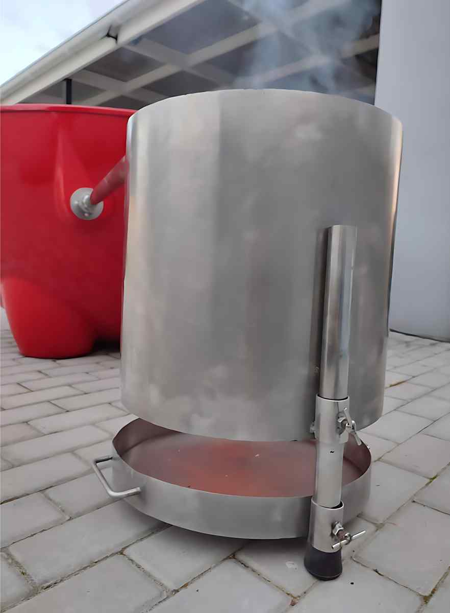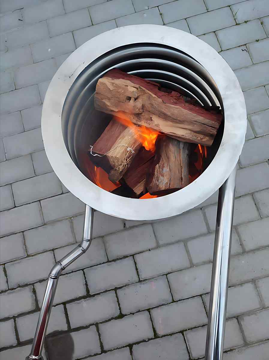 Heating: Water is heated by making a fire in the stainless steel coils. This causes the warm water to rise inside the coils, sucking the cold water in below as hot water is released above. This creates a comfortable and steady flow of hot water entering the hot tub. No electricity and no noisy pump are used during this process, making the Tickle Tub completely off the grid and eco-friendly.
